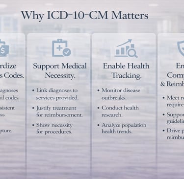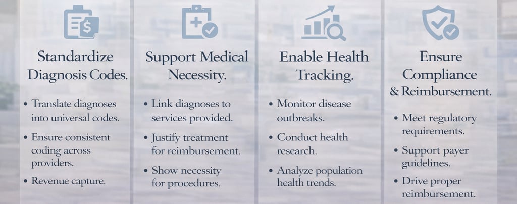 Standardize the classification of diagnoses and health conditions for accurate documentation, billing, reporting, and healthcare data tracking.