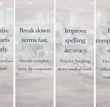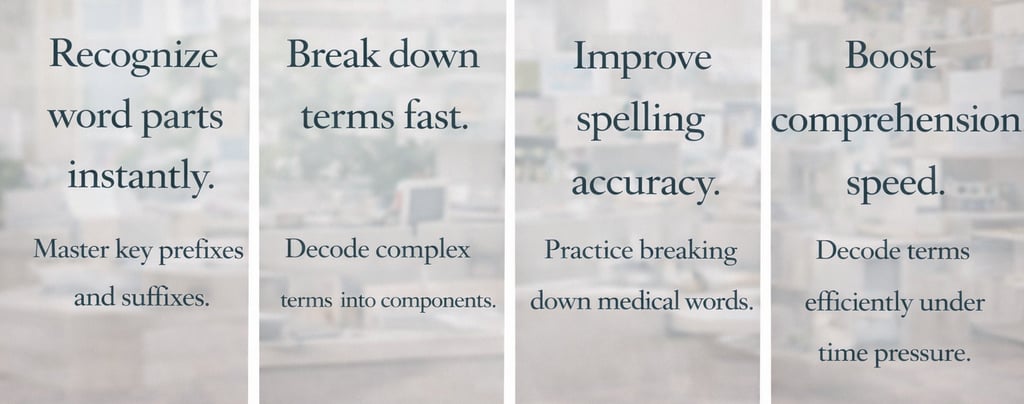 Strengthen rapid recognition and decoding of word parts so you can accurately interpret unfamiliar medical terms under timed conditions.