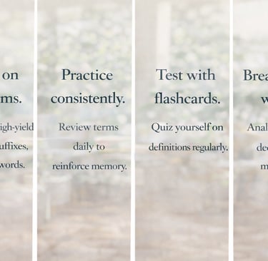 Begin by selecting a terminology category or body system you want to focus on. Each sprint is structured as a quick, focused session that challenges you to recognize, define, and apply medical terms in context. As you work through the questions, focus on breaking words down into prefixes, root words, and suffixes rather than trying to memorize everything at once. Pay close attention to patterns and recurring terms, as these are commonly seen on the CPC® exam. If you encounter unfamiliar terms, use them as learning opportunities and revisit those areas in future sprints. Repetition is key—run the sprint multiple times to build recognition speed and confidence. Over time, you’ll notice that complex terms become easier to understand and interpret.