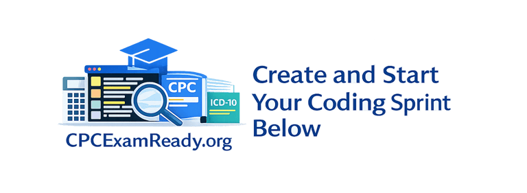 Practice exams, coding sprints, and study tools designed to help medical coding students prepare for the CPC certification exam with confidence.